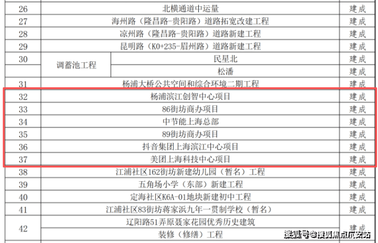 这份来自杨浦区官方公示的项目清单,清晰标注了从“新开工”“在建”到“建成”的全周期进度。其中,抖音、美团、滨江创智中心的全面建成,将杨浦滨江的发展确定性,从蓝图实实在在落地为实景。