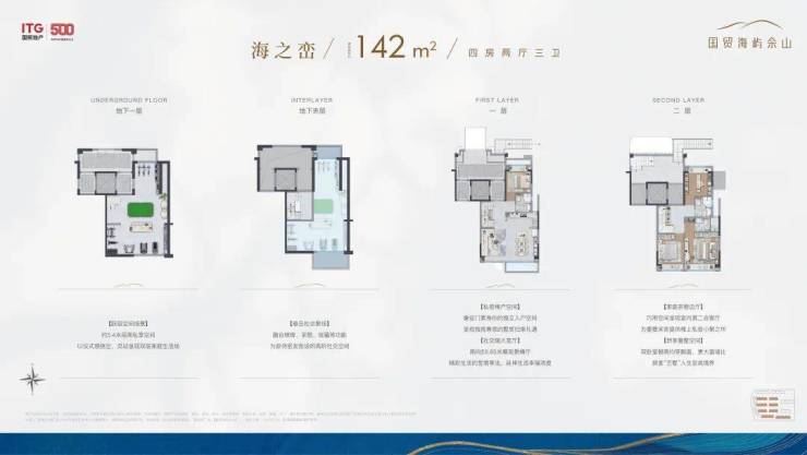 三进四大主题墅级归家场景。以山澜、望云、礁屿、秘谷四大主题景观统一打造雅奢度假风格,让业主尊享星级归家体验。