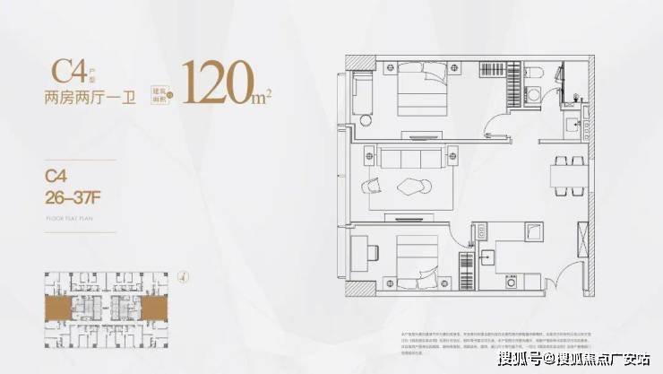 建筑面积约 105 - 120㎡,均为两房户型?