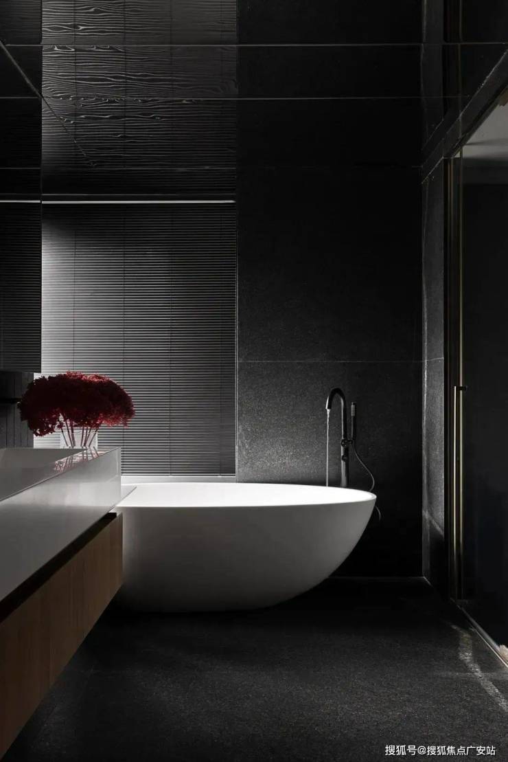 浴室贴心地做了三分离设计,完美践行了极简设计背后暗藏的功能主义。灰色与木色交融,创造出平和舒适的视觉体验。