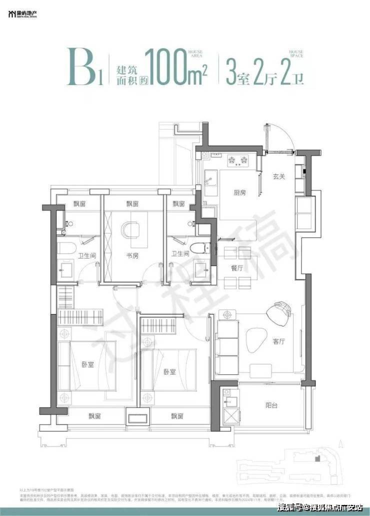 建面约100㎡高层3房共132套