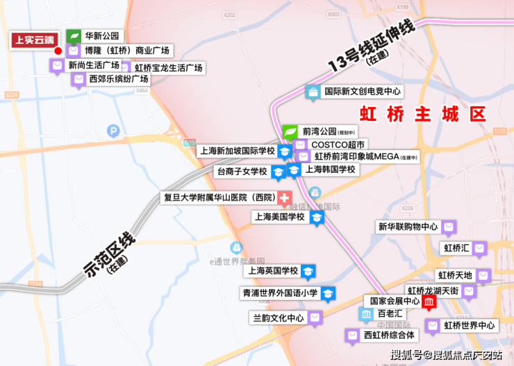 上实云端位于华新板块核心,与虹桥前湾地区核心直线距离不过2公里,与虹桥核心区直线距离不过8公里,可谓是近水楼台先得月。