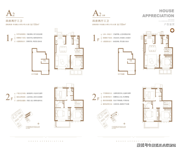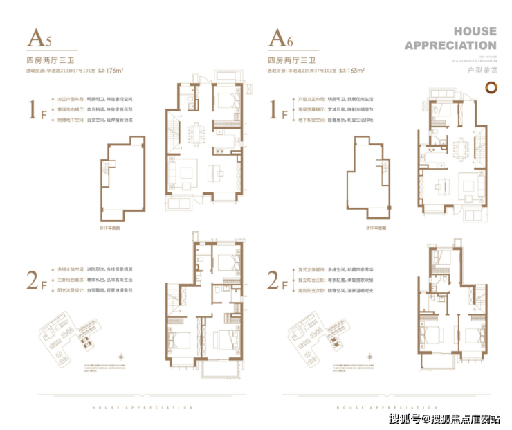 下叠户型,共有三个主力户型,建面约155、163、176㎡下叠。