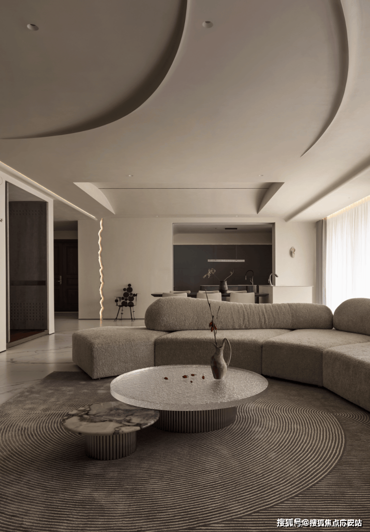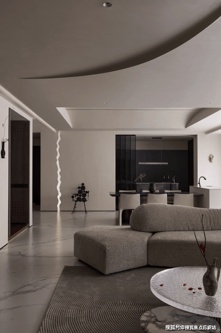 阅读时光,沉浸在简约与静好的氛围中。优雅的弧线,将空间衔接得行云流水,消弭了空间的硬朗感与冷冽性,让温馨感渐次丰盈。