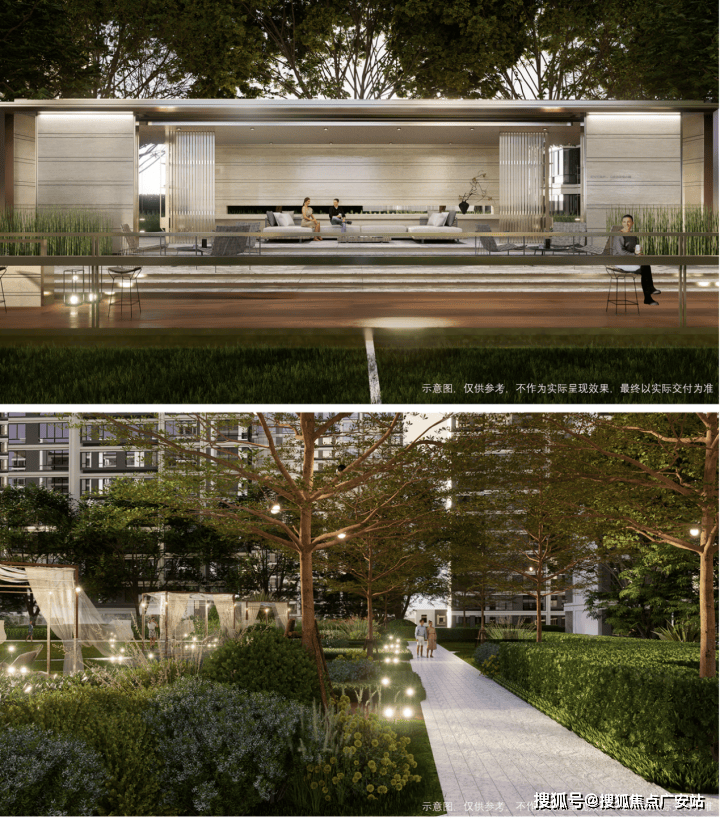 社区景观上,营造“一轴一心三主题”全龄共享的园林空间,让业主沉浸式体验更具松弛感的邻里生活。