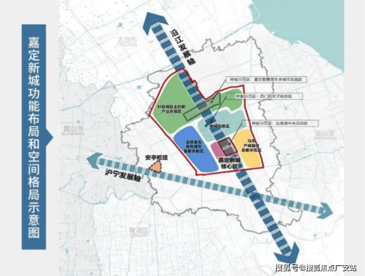 在嘉定构建“一核一枢纽、两轴四片区”的新格局中,安亭枢纽,同时占据了枢纽和沪宁发展轴。
