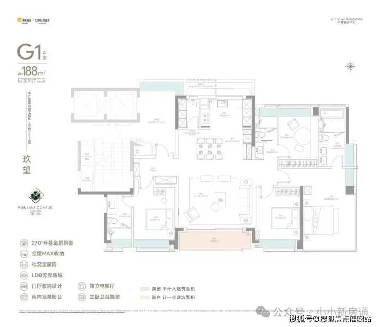 而在户型设计方面,建面约188㎡的4房产品,更是做了全面的超配。