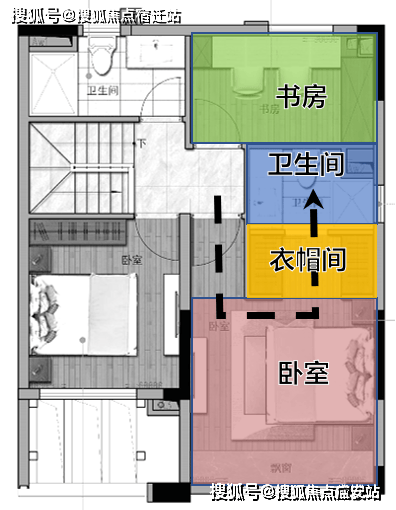 ▲建面约117㎡中叠户型二层功能布局示意图