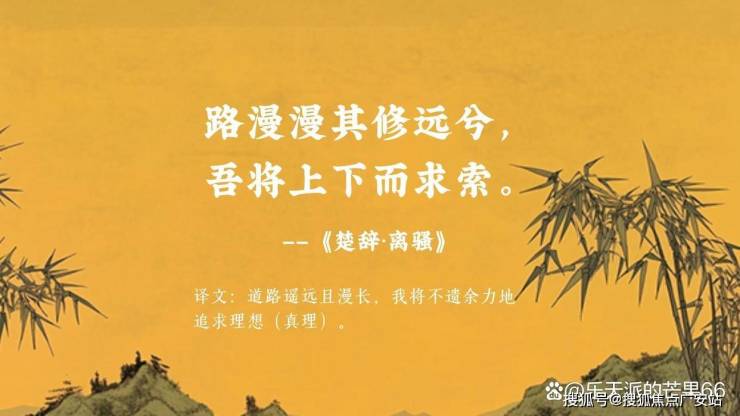 赏析:这句诗以路途的遥远漫长,象征人生或追求理想的道路充满了艰辛与挑战,体现了诗人屈原在追求理想的道路上,不怕艰难险阻、执着坚定的精神品质。它激励着人们在面对困难与挑战时,保持坚定的信念与不屈的精神,勇往直前、不断探索。