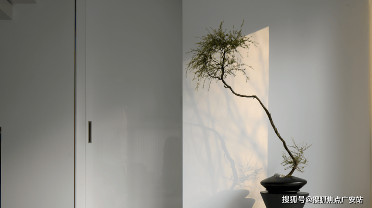 器物、枝叶缔造了虚实相生的意境,在墙面上留下了唯美的“倩影”,进而丰富了空间内在。