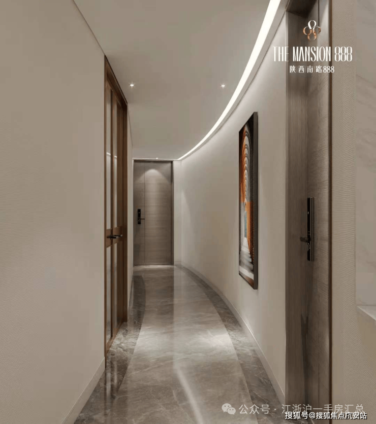 【陕西南路888】外立面,在梧桐树叶的簇拥下,白色的立面挺拔庄严,辨识度极高!内部公区,从入户大堂,到电梯间再到售楼处,色彩明亮,大气恢弘,品质感十足的同时,充分彰显业主的品位!