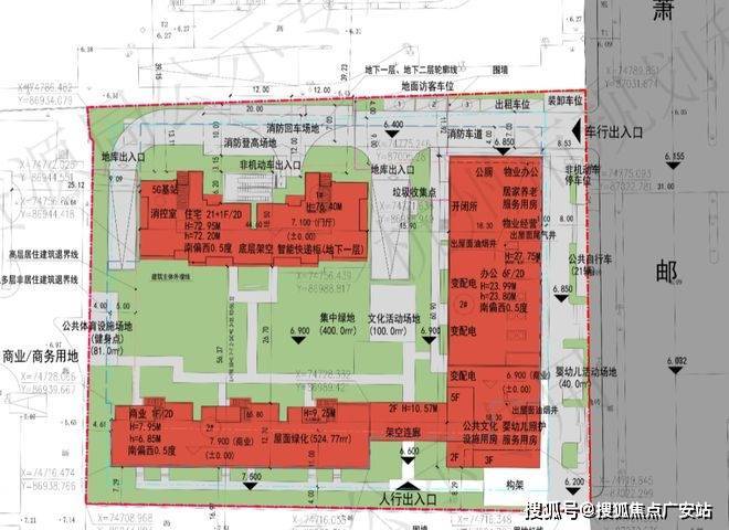 从规划图上看,内部有集中绿地、公共体育设施、文化活动场地!