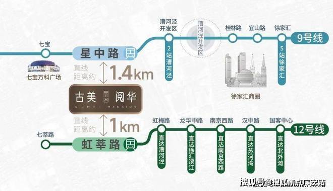 坐拥双轨交交通大动脉,12号线直达漕河泾、徐汇滨江、南京西路、苏河湾、北外滩等核心板块;9号线1站可达七宝万科、5站徐家汇、13站浦东陆家嘴、世纪大道等;规划中的嘉闵线未来可联通大虹桥枢纽,畅通全城。