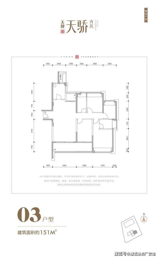 建面约151平的户型:是4房2厅,同样是双阳台南北对流的户型,房间更多,尺度感优,想要改善居住的,选它准没错。但这个户型只有10套,是3个户型中数量最少的,大概只占这波产品1/5,是最难抢的户型。