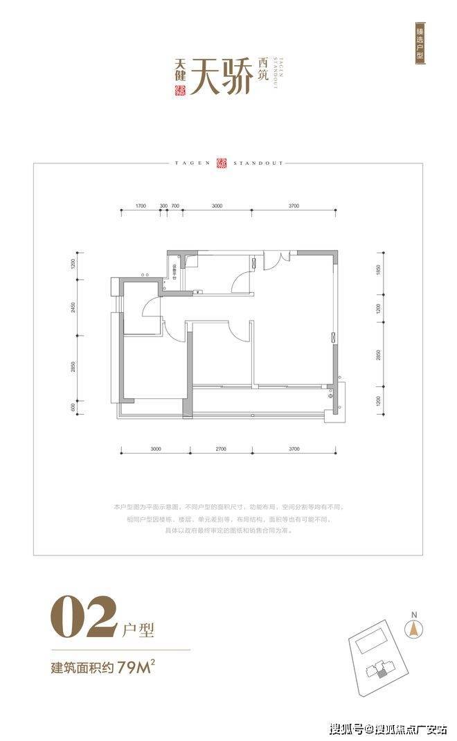 建面约79平的户型:做了2房2厅,是这批产品中面积最小、上车门槛最低的;该户型有长约6.4米的景观阳台,空间通透明亮,三口之家居住非常舒服。