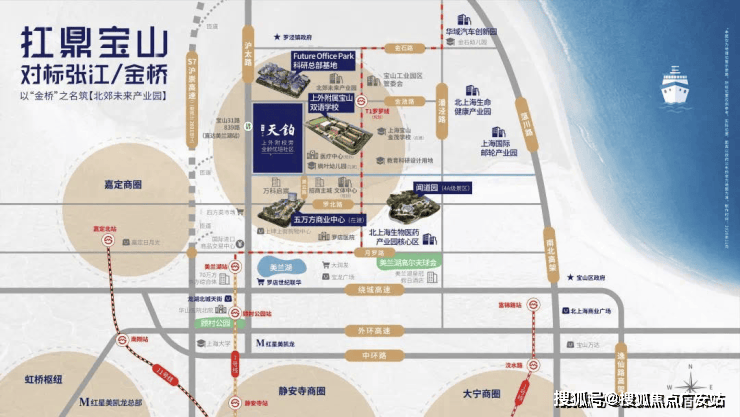 上海·宝山天铂位于北郊未来产业园南面,东至萧云路,南至沪品路,西至沪太路,北至金池路。