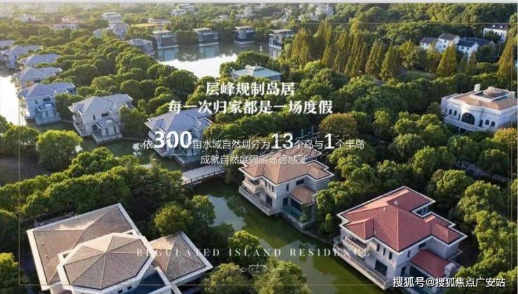 项目规划配有大量草地绿地、树木、各种花草,开挖护城河道,形成1个半岛+13个小岛的分布格局,还在公路旁种植具有观赏和隔音作用的树木,西侧的花墙长达一千米多,力求成为一个一面临山、四周环河、安然静谧的佘山别墅“世外桃源”。