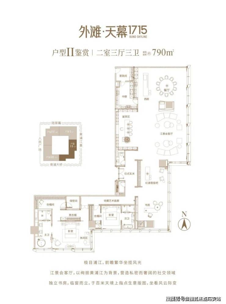 绿地·外滩天际,在外滩地标绿地外滩中心T1#300m超高层楼栋,标准层高约4.5m,主力户型面积约724-799㎡,以一种塔尖群体向往的融合式生活方式,诠释外滩滨江恒产的价值高度。于此,以王者视角,俯揽黄浦江,对望陆家嘴,尽享上海城市之曜。