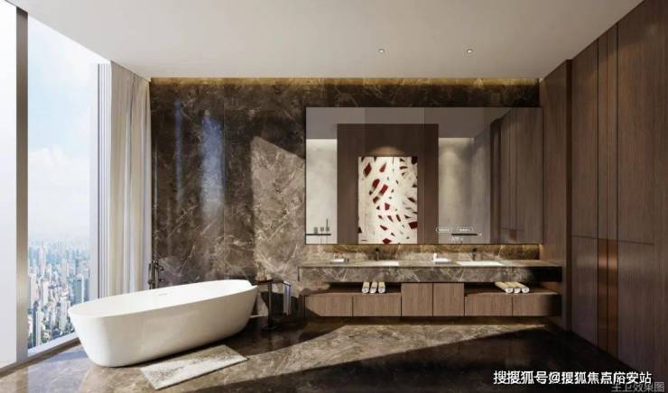 刻画格调,渗透每个细枝末微的营造,以考究工艺彰显卓越品质。暖灰调石材从地面延伸至墙围,凝练生活的温暖气息;干湿分离的规划方式,在开阔且独立的分区中注重使用的畅快体验。