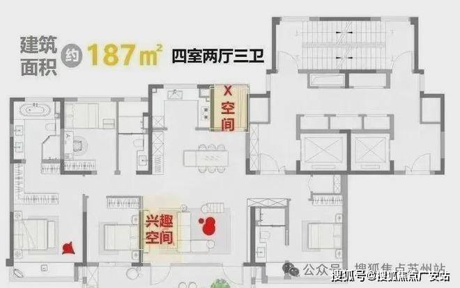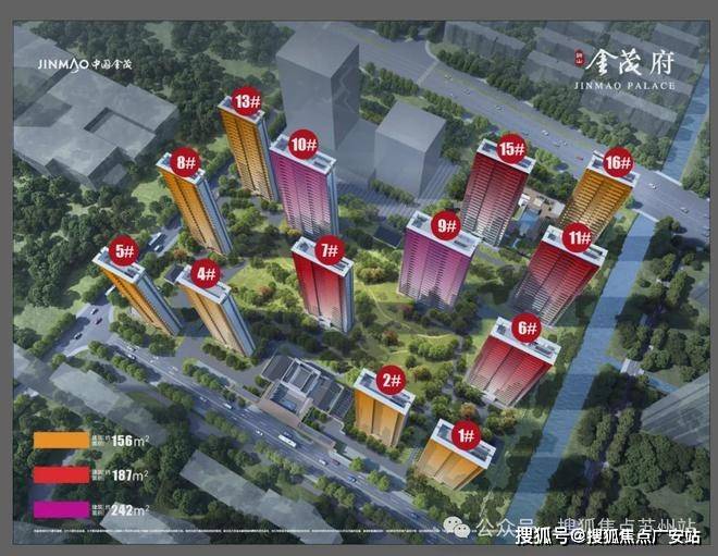 户型设计:主力户型包括四居室,面积分别为156㎡、187㎡和242㎡,均带装修交付;其中187㎡户型采用四室两厅三卫设计,面宽达约17.8米,配置双联大阳台和270°转角视野