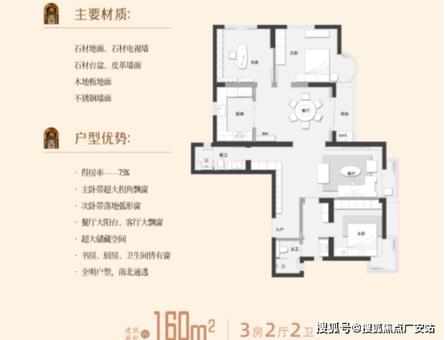 3房2厅2卫 得房率75%