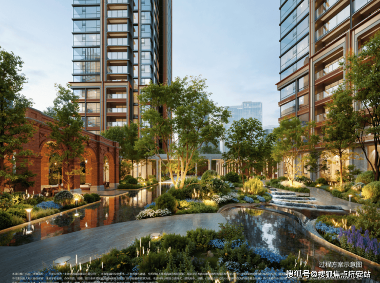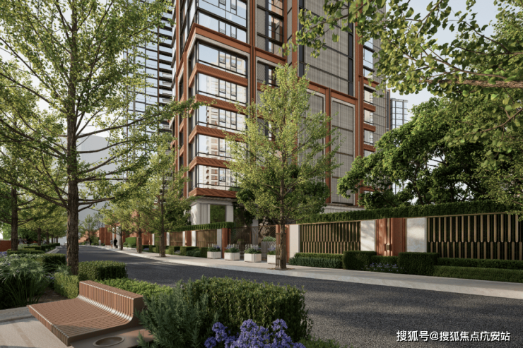社区景观上,突破市区项目常见的「兵列树阵式」布局,通过建筑楼体的精密偏转,形成罕见的围合式社区形态。