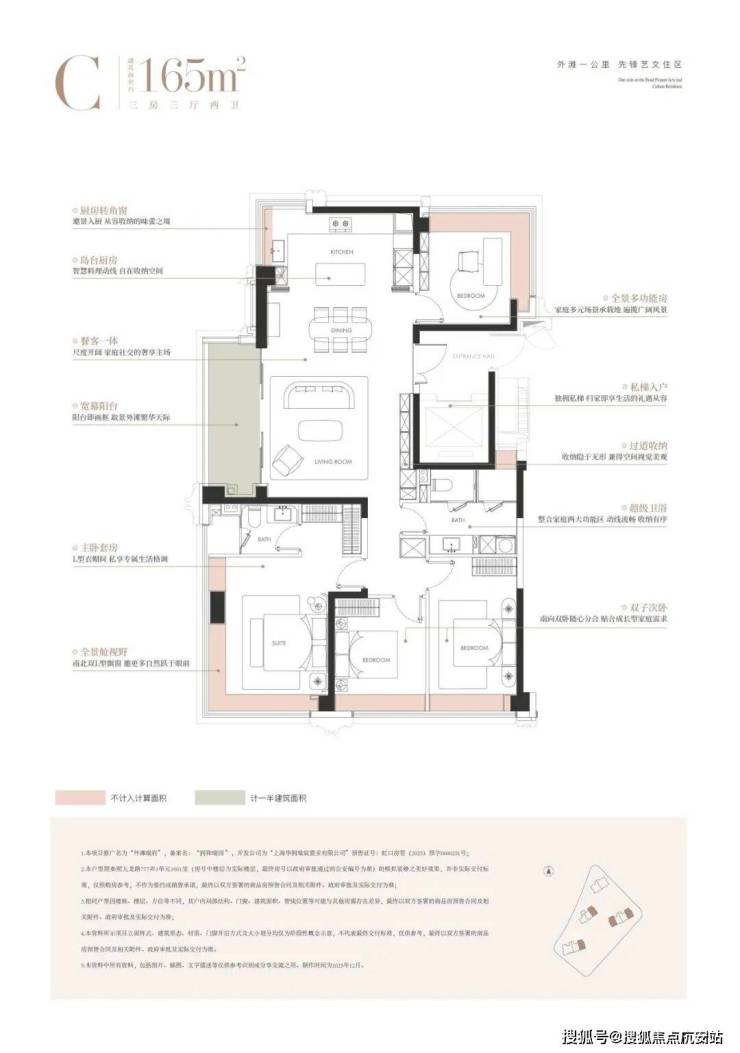 因此,外滩瑞府在建面约165㎡户型中创新推出三四房灵活定制体系。