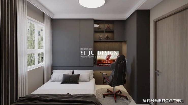 卧室以柔和的莫兰迪色为背景,通过材质的巧妙搭配与智能化设计,将功能性与艺术感完美融合。在这里,深色不再是沉闷的象征,而是承载着家人温馨回忆的温暖港湾。