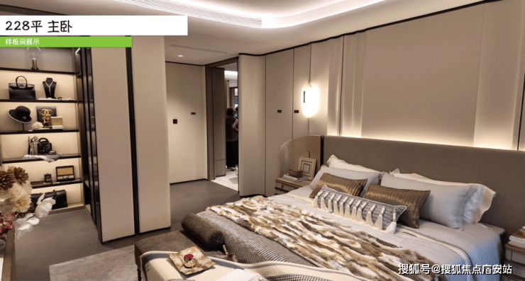 主卧是拥有独立玄关的超大套间,包含步入式的衣帽空间,卫生间还有南向观景浴缸。