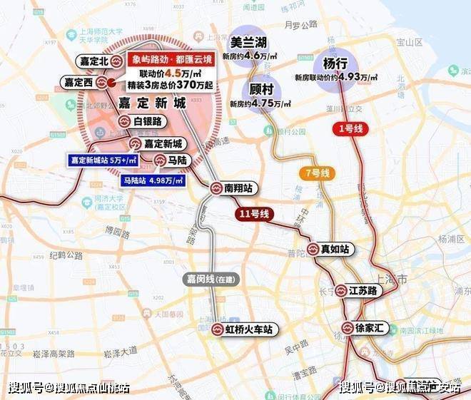 而且项目不仅可以通过11号线直达真如、徐汇、前滩等城心CBD,还能在南翔站换成嘉闵线(在建中)直达大虹桥。