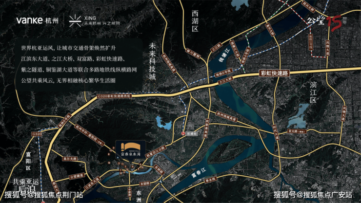 通过江滨东大道、彩虹快速路等便捷交通网络,与市中心无缝对接,仅需约20公里车程即可畅达滨江区,轻松融入杭州半小时经济生活圈。