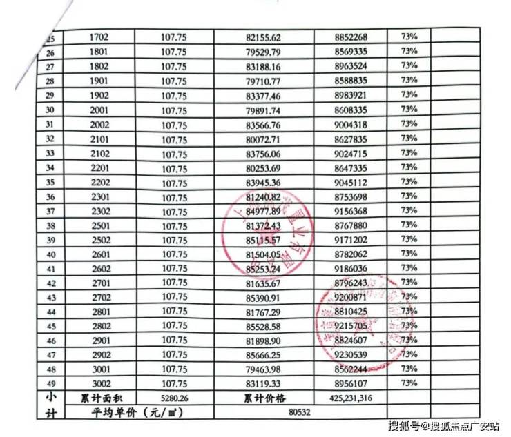 一房一价表:
