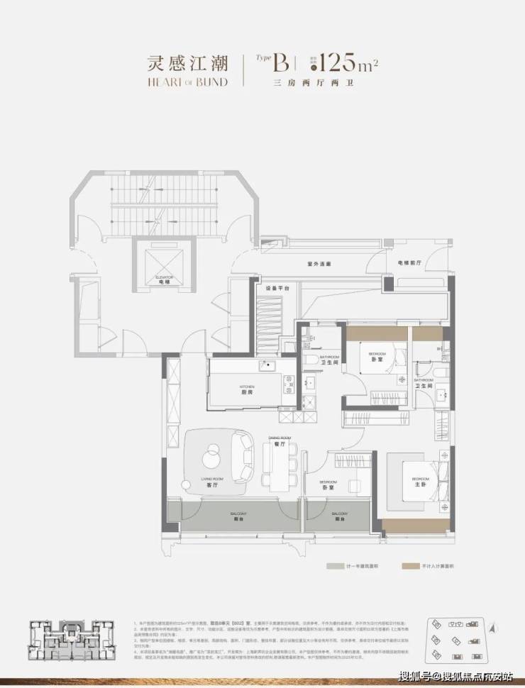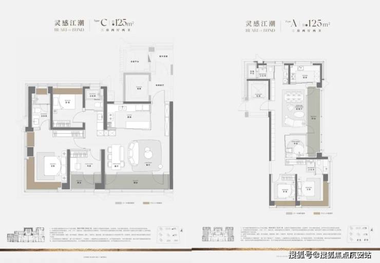 建面125㎡户型,这个户型的含金量和受欢迎程度不用多说,也是前期卖得非常火爆的小户型。
