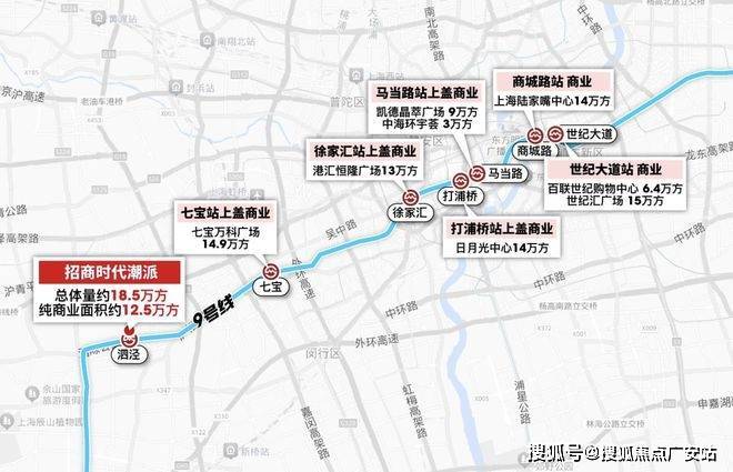首先便是,作为9号线泗泾站新一代超级TOD,拥有着约18.5万方的商业,「招商时代潮派」与地铁商场直线仅约200米!更重要的是,它还拥有着3站七宝、6站漕河泾、9站徐家汇的强大通勤便捷度。这在全市500万能级的置业板块中,都称得上是顶尖的存在!