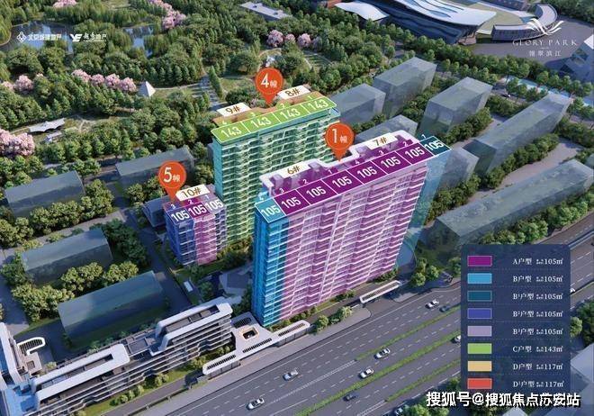 户型:主力户型为高层105㎡三房、143㎡四房及洋房120㎡,全明设计。143㎡户型采用一梯一户布局,配备独立电梯厅、270°转角飘窗。