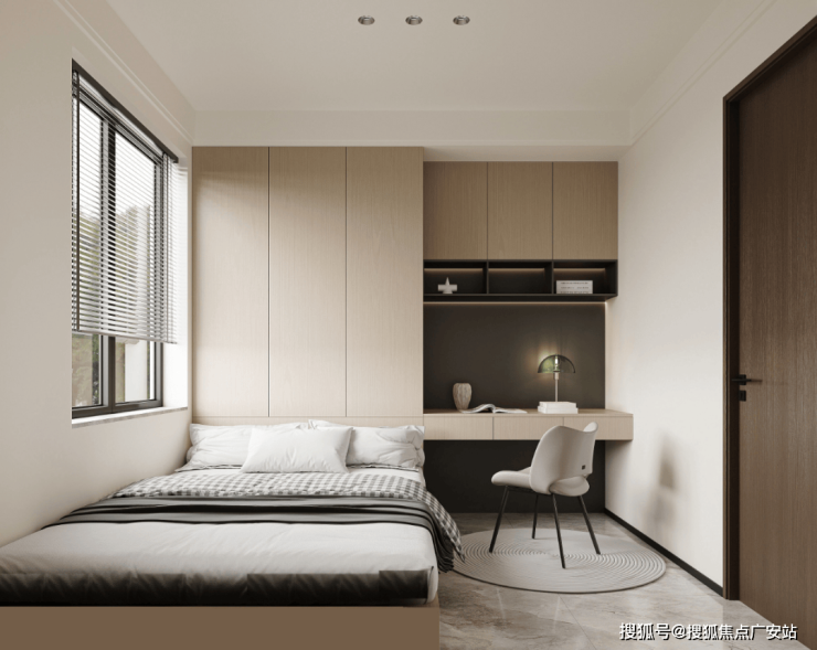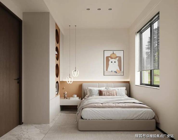 次卧极富现代感的设计,清新优雅的自然曲调,目光所及之处,皆是不扰人的色彩,还原生活最简单的样子。
