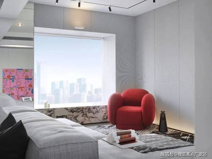 大片的无死角落地窗,占据了整面墙体,都市的景观一览无遗。