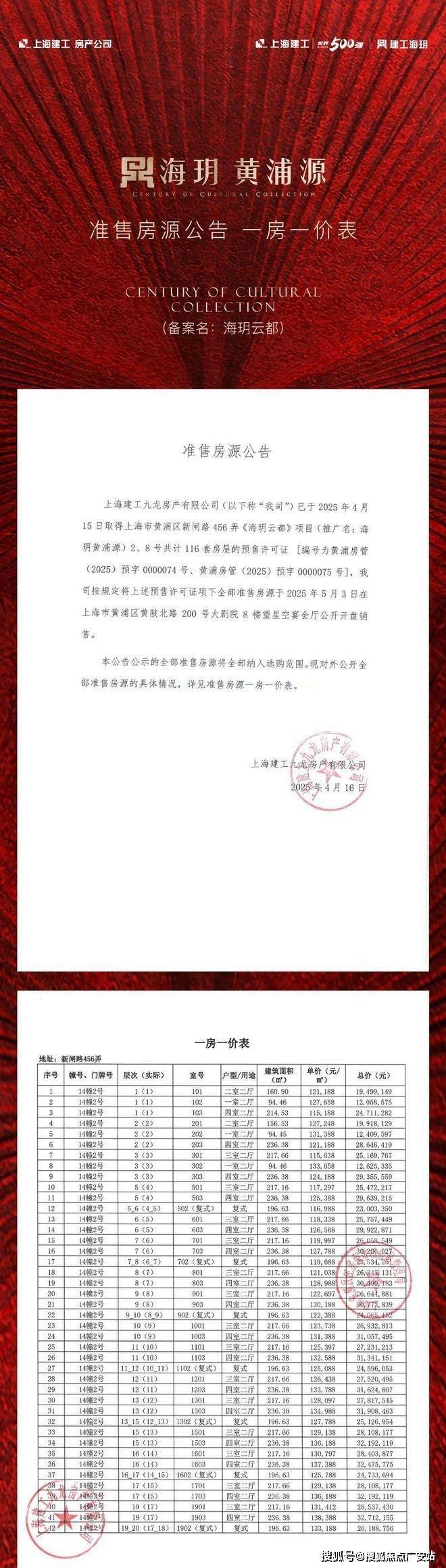 浦区「海玥黄浦源」少量建面约193-402㎡多种户型;均价14.56万/㎡!