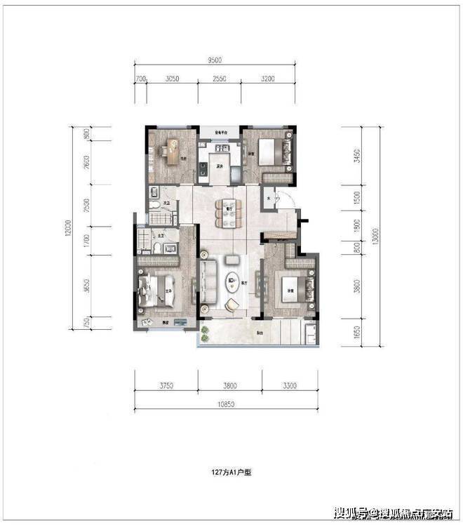 约127㎡经典四叶草户型,全明通透,4个功能间分别位于四角,正好契合了当下注重隐私的居住潮流。
