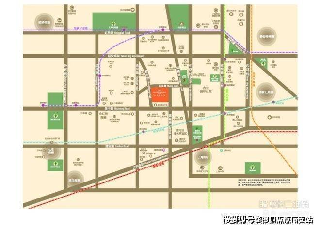 交通配套方面:项目地处长宁、徐汇、闵行三区交汇的金虹桥板块的核心区位,拥有多维立体的交通,延安高架、中环线、外环线环伺。