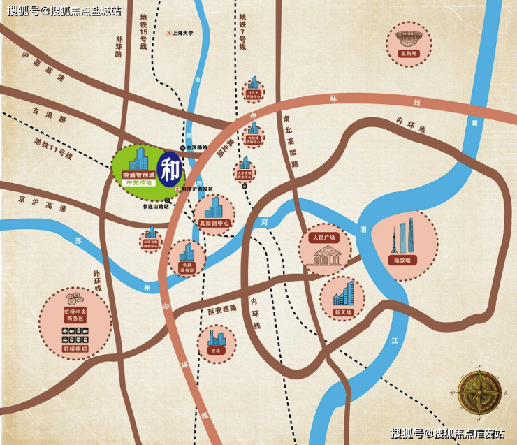 项目位于上海七大中心城区的普陀区桃浦板块,中心城区的西北门户,距中环线仅1公里,上中环后即可到达人民广场、虹桥枢纽、陆家嘴。