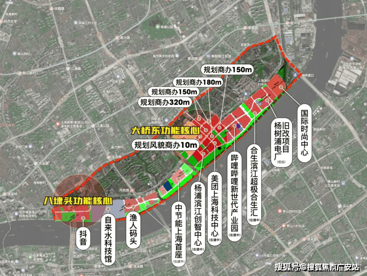 杨浦滨江在上海市2035总体规划中 被划入CAZ中央活动区(杨浦滨江段),整个区域汇聚现代高端产业,现已有B站、美团、字节跳动三大千亿产业。