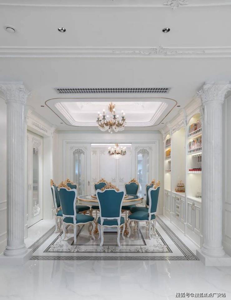 法式风格非常注重对称性,通常以一个视觉中心点,如壁炉展开布置,围绕这个中心点进行对称布局,营造出恢宏的气势和奢华的居住空间。