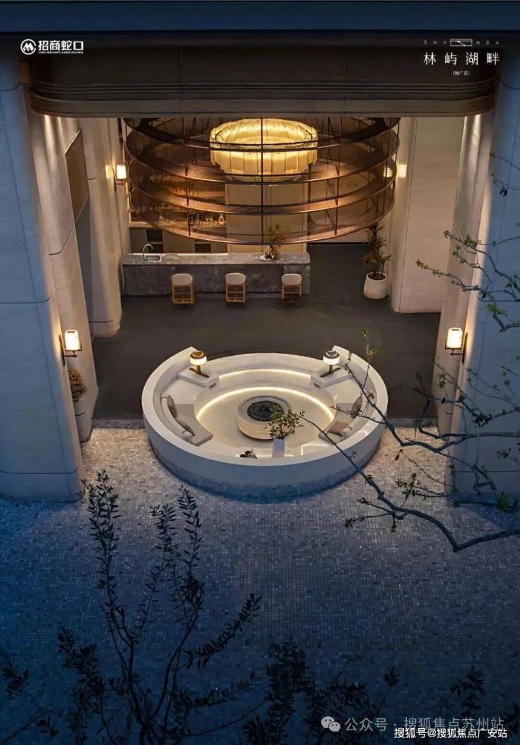 林屿湖畔的阳光地库让归家的感受颇具温馨与松弛感。下坡道引天光垂照,设计风格借鉴新加坡edtion度假酒店,绿植、柔和片墙及奢石门头、镂空天幕结合,归家即度假的开始。