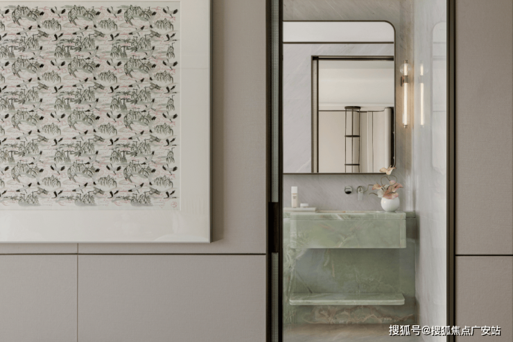 干湿分区以透光移门隔断,增设水波纹艺术移门双重闭合,日常透光通透明亮,高隐私需求时双重门全闭隔绝,满足不同人的隐私需求。
