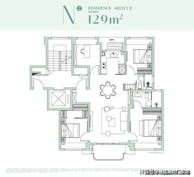 129㎡基本是这次产品线里的“人气担当”。四叶草格局让四个房间分布在四角,私密性和动线都有保证;南向三开间+宽尺度客餐厅,让一家人的起居、社交都很舒展。