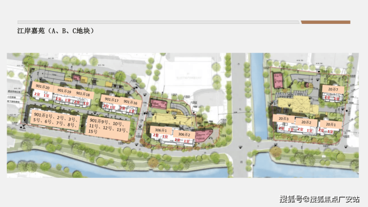 设计中将7个独立的地块与滨水空间相结合, 通过对商业、绿化、广场界面的有机穿插、整合成为一个与景观河道交相辉映、有节奏的公共长廊,提升滨水区域的环境品质。