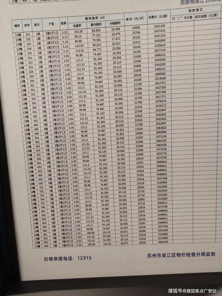 一房一价表:
