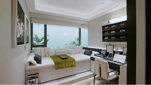 主卧转角飘窗,清晨咖啡,夜晚小酌,坐拥270°流动风景,私享片刻宁静;