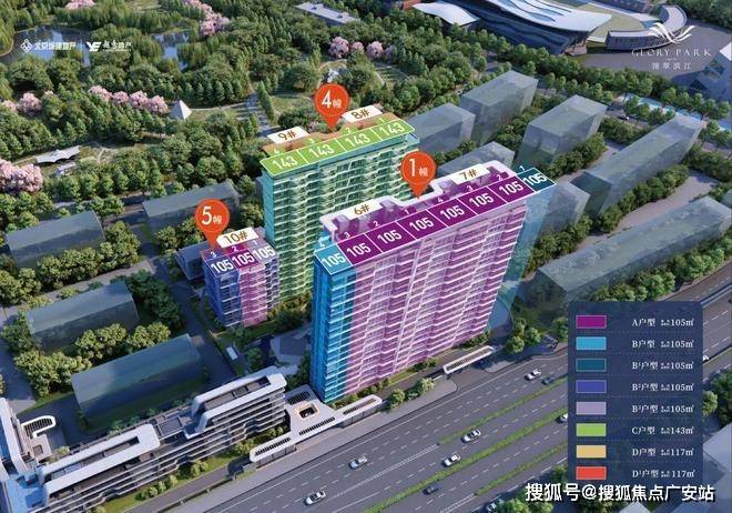 户型:主力户型为高层105㎡三房、143㎡四房及洋房120㎡,全明设计。143㎡户型采用一梯一户布局,配备独立电梯厅、270°转角飘窗。